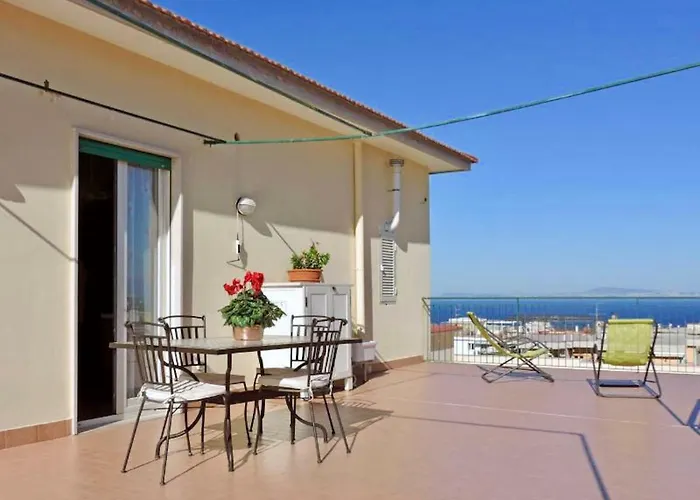 Die 2-Zimmer-Ferienwohnung Sorrento Attico Panoramico In Centro liegt circa 1 km vom Strand public beach of Sorrent entfernt und verfügt über einen Balkon und einen Ankleidebereich. Dieses Apartment hat eine Terrasse mit auf Blick das Meer.